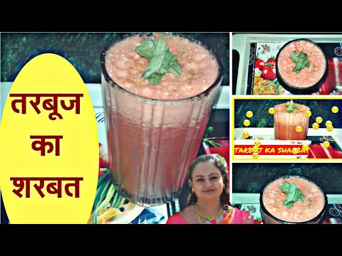 तरबूज का शरबत / WATERMELON JUICE तरबूज का शरबत आज हम तरबूज का शरबत बनाना सीखेंगे । गर्मी के मौसम में तरबूज़ का शरबत शीतलता और ताज़गी प्रदान करता है। तरबूज स्वास्थ के लिए भी फ़ायदेमंद है। यह आँखों के लिए वरदान है। इसके सेवन से बुद्धि तेज़ होती है। यह दिल का भी ख़ास ख़याल रखता है। यह वज़न घटाने में भी सहायक है। यह सभी पोषक तत्वों से परिपूर्ण है। यह कार्बोहाइड्रेट, विटामिन (ए और सी), पोटेशियम से भरपुर है और इसमें वसा और कैलोरी बिल्कुल न के बराबर होती है। तरबूज सभी उम्र के लोगों को पसंद होते हैं इसमें 92% पानी और 8% चीनी होती है। इसमें मुख्य रूप से पानी और इलेक्ट्रोलाइट्स होते हैं। तो आइए तरबूज का शरबत बनाना सीखते हैं। इसे बनाने में सिर्फ़ 5 मिनट लगता है।कृपया इस वीडियो को अंत तक देखे और शेयर करना न भूले ..... WATERMELON JUICE TODAY WE ARE GOING TO LEARN HOW TO MAKE WATERMELON JUICE. IT IS ONE OF THE BEST SOURCE TO GIVE ENERGY DURING SUMMER SEASON.WATERMELON ALSO ENHANCES THE EYE SIGHT AND REGULATES BODY METABOLISM. IT ALSO REDUCES EXTRA BODY FAT. IT IS FULL OF CARBOHYDRATES, POTASSIUM AND VITAMINS.IT CONSISTS OF 92% OF WATER AND 8% OF SUGAR. TODAY WE WILL LEARN TO MAKE JUICE OF WATERMELON. PLEASE WATCH THIS VIDEO TILL THE END AND DON'T FORGET TO SHARE ......